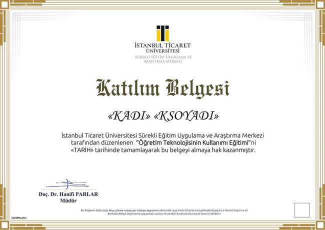 • Sertifika/Belge almaya hak kazanmak için eğitimi 90 (doksan) gün içinde tamamlamalısınız.