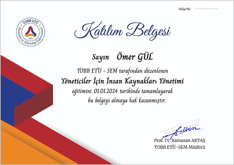 Yöneticiler İçin İnsan Kaynakları Yönetimi Eğitimi TOBB EKONOMİ VE TEKNOLOJİ ÜNİVERSİTESİ